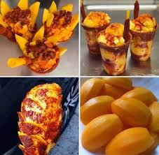 Estos sabores se mezclan con la pulpa suave y dulce del mango, creando una combinación única de sabores dulces, ácidos y picantes. Es una experiencia sensorial refrescante y popular en las playas de Mazatlán, donde se pueden encontrar vendedores ambulantes ofreciendo vasos, bolsas o en palo con chile y limón, perfectos para disfrutar bajo el sol y deleitar el paladar con su sabor tropical y estimulante.
